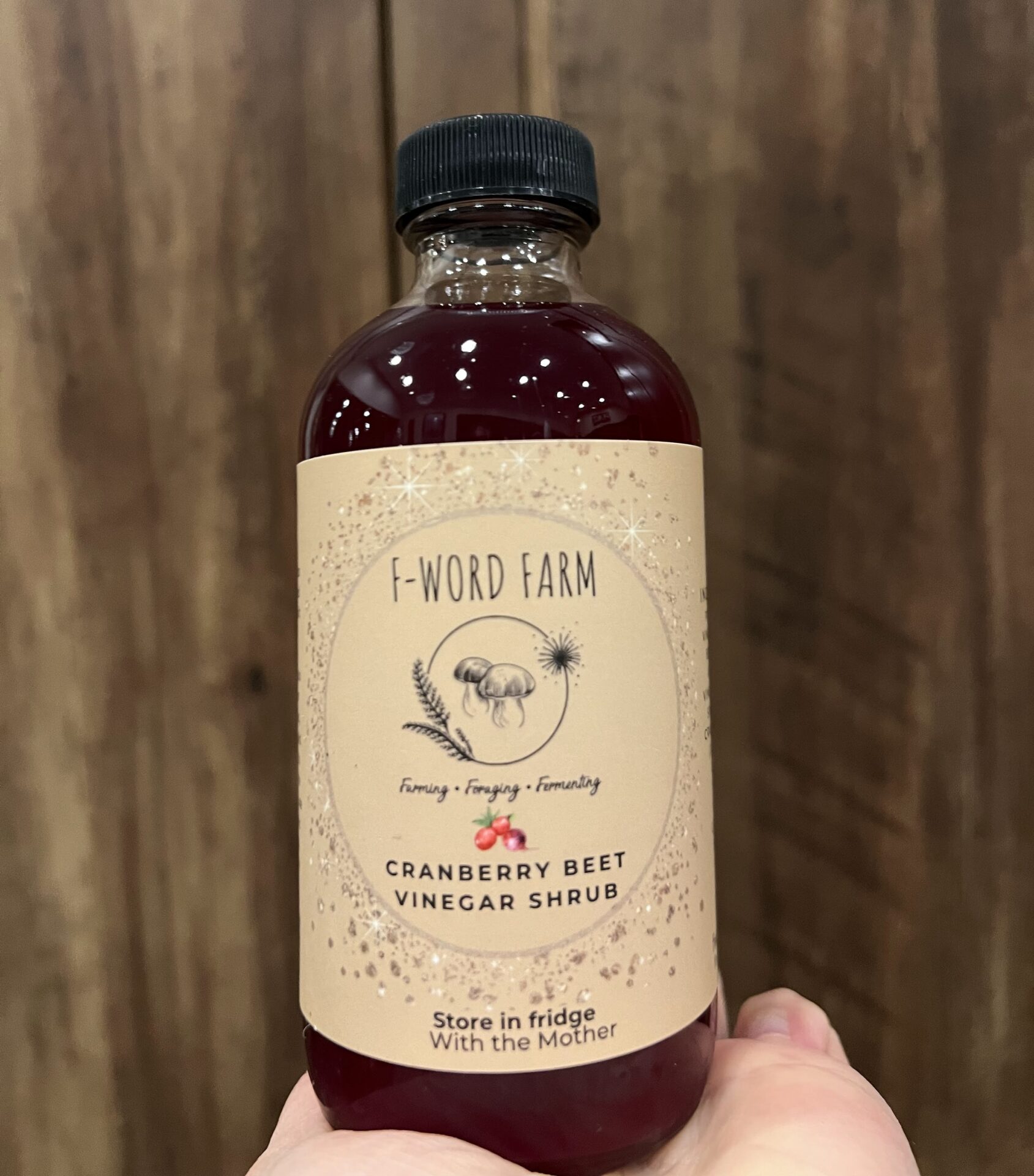 Shrubs are a combination of fruit, a sweetener and vinegar. This is made from cranberry & cinnamon syrup combined with F-Word Farm Pickled Beet vinegar. It’s a sweet and tangy delight. Mix with equal parts olive oil and a pinch of salt for salads, or just add a little to finished chicken or fish. Mix with seltzer water for a probiotic mocktail or incorporate into your favorite cranberry cocktail. Try in cranberry sauce or even chicken salad!